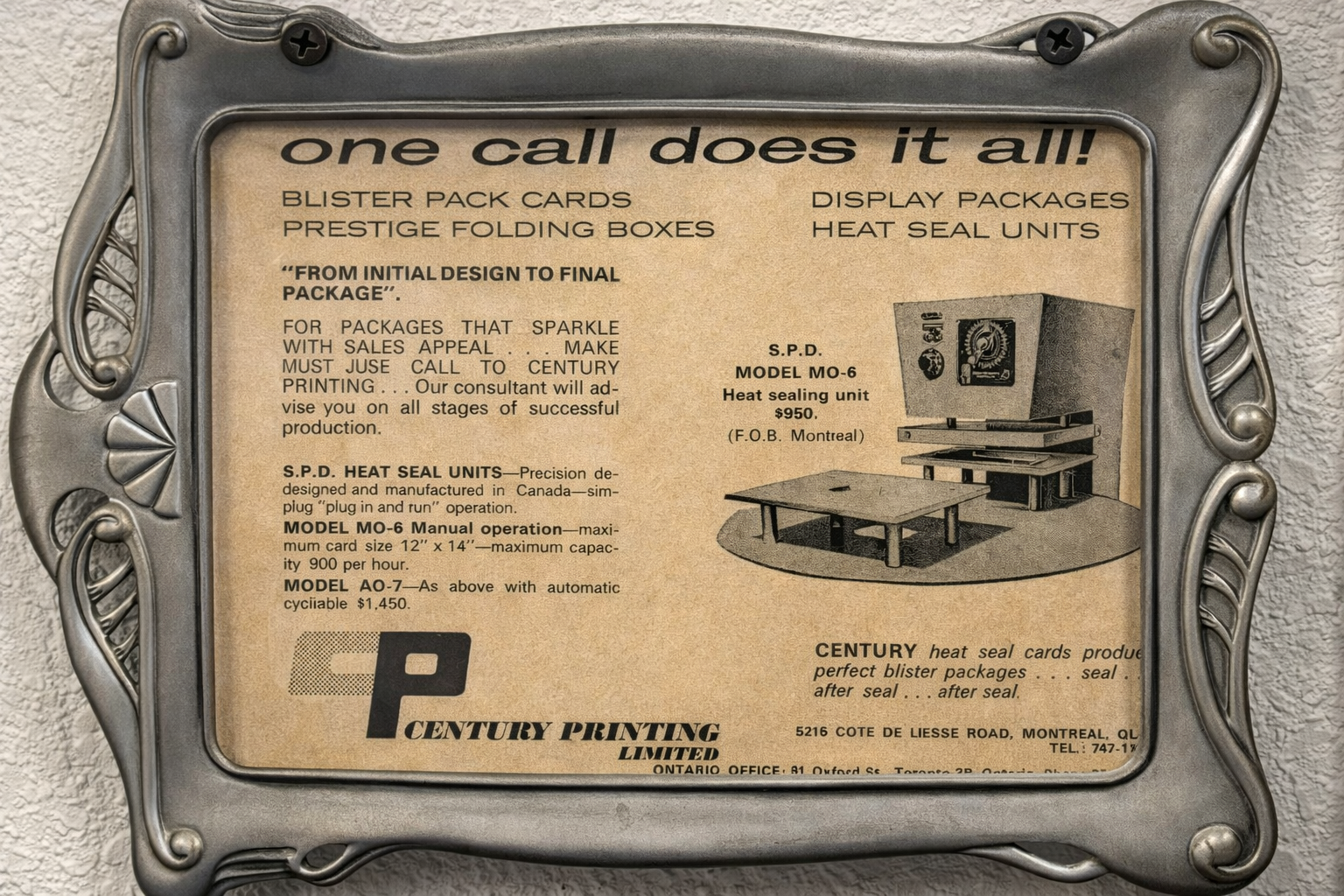 In 1949, in Montreal, Canada, Peter Green revolutionized retail packaging by creating the first-ever blister pack. His primary goal was to combat pilferage in retail stores. After countless hours of hard work and experimentation, Peter perfected the chemical bond between chipboard and plastic, using butyrate at the time. His next challenge was designing an affordable machine to seal the blister to the card. Ingeniously, he combined a temperature controller from an oven and a timer from a Singer sewing machine to achieve his first successful seal. The rest, as they say, is history.